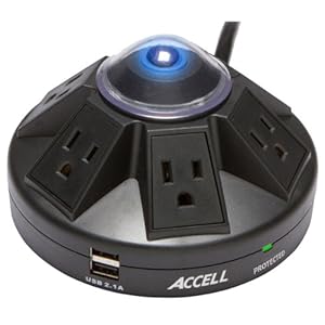 This item: Accell D080B-015K Powramid - 1080 Joules Surge Protector (6 Outlets, 2 USB 2.1A Charging Ports) 6 foot Cord - Black