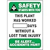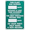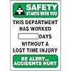 - Sign reads, "This department has worked #### days without a lost time accident - The best previous record was #### days - Do your part! - Help make a new record"