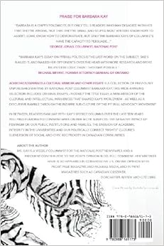 Anyone who tires of the seemingly relentless stream of politically correct disinformation, much of it propagated by disciples of the strangely conflated left wing- "let individuals have their way" lobby, should appreciate Barbara Kay's book. She researches topics thoroughly, writes clearly and intelligently and has a nose for truth and justice - as well as for their opposites.
