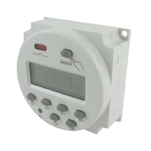 Features: Panel mounted, advanced pre-setting one week before, digital electronic timer switch with daily programs, repeat programs with 17 on/off setting and manual over-ride, auto timer error correction +- 30 sec, weekly.