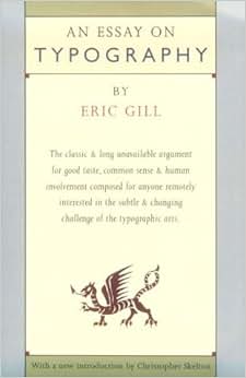 This multi-faceted book is a gem. It was written in a period when Industrialism was increasingly establishing itself over Craftsmanship. Gill starts by analyzing the clash between these two worlds, then goes on to situate typography in this melee. Most of the book concerns Gill's views on correct typography, some of which seem quirky. Gill is unique: his forward style and searing insight are inspiring and refreshing, even after six decades. The last section of the book is Gill's proposal to convert written English into phonetic writing, avoiding spelling/pronunciation inconsistencies and increasing efficiency. It makes great sense - typical Gill