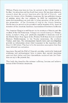 The author does delve into the Assyrians modern history quite well. Beginning with the conversion by Addai he goes through the whole course of history raising the highpoints of their contributions and good times and showing the reader what their life was like. The history give a broad overview something which a new comer to Assyrian history will find valuable. To someone of more knowledge they may find themselves craving a more in-depth approach. the Assyrians when given the chance have a lot to offer but due to what the author deems as Islamic fundamentalism they have been persecuted. In this instance he is right.Read more ›
