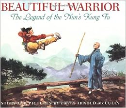 a tense drama about brave young women who find strength in themselves. McCully tells a kung fu story about two legendary women in seventeenth-century China. First, there is the child prodigy whose father refuses to allow her to become an idle lady with bound feet. Instead, she studies the five pillars of learning and the martial arts and becomes a Buddhist nun named Wu Mei, beautiful warrior. Then Wu Mei saves a desperate, scatterbrained young girl from a forced marriage to a hooligan bandit. The warrior nun teaches the girl to save herself with kung fu, and as the girl learns that softness and yielding can prevail over hardness and brute force, she grows strong and calm. In a great climactic fight, the small girl uses her technique to rout the bandit and send him flying. The defeat of the swaggering bully has elemental appeal, and there are great comic action scenes of the huge bandit hurtling through the air. In traditional Chinese style, the art of this large-size book includes narrow narrative panels that alternate with wide, detailed, misty landscapes in watercolor, tempera, and pastel. The pictures reinforce the story of strength that comes from mastering yourself and finding harmony with the universe.