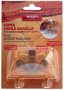 This needle threader allows you to thread thick and thin needles with ease. It also features a magnetic needle picker for getting those small hand-quilting needles off the table. This needle threader is designed to thread needles from size 1 to size 11. Needle threader measures approximately 3 by 2 by 1-1/4-inch. Imported.