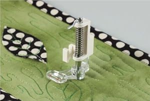 Spring Action quilting foot raises and lowers the needle to allow fabric to be moved between stitches. Fits the following machines: PE770, LS2125i, XL2230, XL2600i, XL2610, XL3510, XL3750, ES2000, CP6500, CP7500, 1034D, PC210PRW, PC420PRW, SE400, LB6800PRW