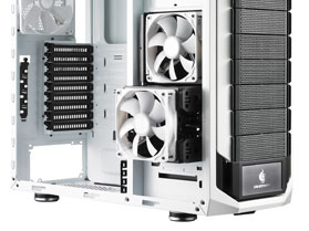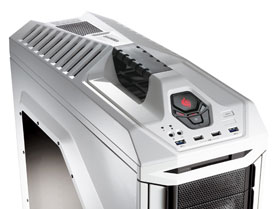 Built to be amongst the most agile full-towers, Stryker includes an ultra-strong travel-ready carrying handle. CM Storm Stryker has a stylish glossy black and white finish on the case and included fans, windowed side panel, full dust filter coverage, a fan controller, an external SSD drive hot-swap dock and two uniquely designed modular hard drive cages. These features give CM Storm Stryker the ability to adapt to workstation or water-cooled gaming configurations easily.