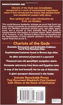 I read Chariots of the Gods as well as several other Von Daniken works, and he never ceases to entertain me (with the exception of Miracles of the Gods - a horrid, poorly executed book). I find his "theories" thought-provoking, yet very weak at their base. Mr. Von Daniken has an irritating habit of jumping from subject to subject, stating his opinions quickly and with little supporting evidence, and then suddenly switching to another "mystery" to start the cycle over again. Even though he makes many compelling points, he never stays on the same subject long enough to fully support his beliefs. If a golden amulet looks like a modern airplane, then it's an airplane. Period. If a stone carving looks like an astronaut, then it's an astronaut. Period. If a straight line drawn in the sand extends for the length of a modern runway, then it's a runway. Period. And this same style has gone on and on for years and through several books, with more on the way. I take everything he says with a grain of salt. He is sooo quick to jump to (seemingly) reasonable conclusions that I can't help but be intrigued... but obviously I can't even call that he does "theorizing" since he never spends enough time on one piece of evidence to complete his arguments. I look at his work as a starting point, rather than a finished product. If someone takes one of his ideas and runs with it, gathering collaborating evidence and building a more air-tight case for the "solution" presented in his works, then in my opinion Von Daniken has done his job. Unfortunately, I can't be sure Von Daniken shares this opinion. I think he raises important questions, yet his answers are too quick off the mark and ultimately unsatisfying to the discriminating reader.Read more ›