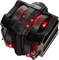 The V8 GTS is the latest addition to Cooler Master's famous V-series of performance heatsinks featuring a powerful car engine look, featuring a high performance horizontal vapor chamber that spreads heat up to 8x faster than heatpipes. As a result the V8 GTS features revolutionary high efficiency and cooling performance which minimizes CPU hotspots and quickly balances the heat load between all heatpipes.