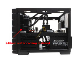 Water cooling support: 240 mm radiator x 1 (front) 120 mm radiator x 1 (rear) |
