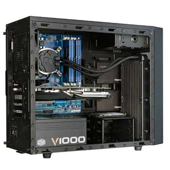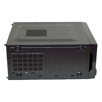 | A removable dust filter located beneath the power supply area makes it easy to clear dusty build ups. | 3 HDDs can be used to fill the exposed 3.5" drive bay and internal cage, or replace the two cage HDDs with SSDs. Two additional SSDs can be mounted along the right side of the case. |