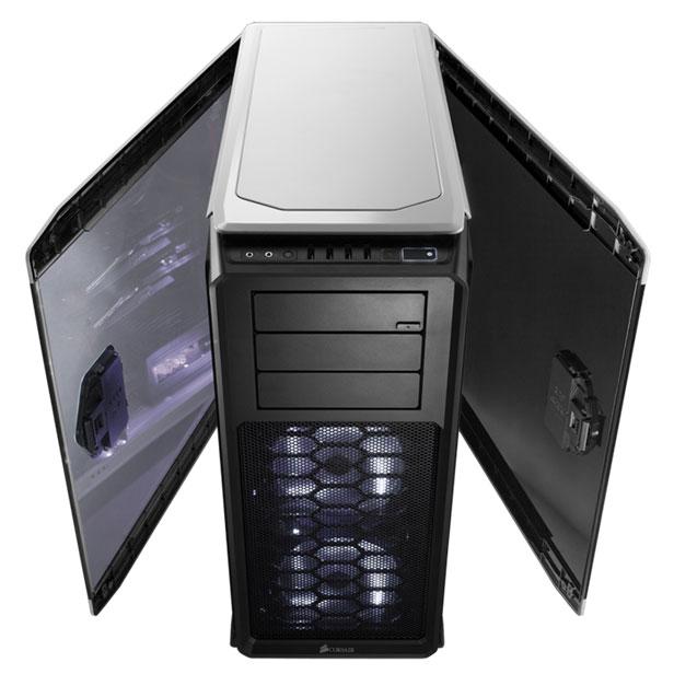 The Graphite Series 760T full-tower PC case starts with a visually stunning design that's a match for its stunning performance potential. The beauty begins on the outside with its sculpted shapes and ingenious, full windowed hinged side panel with flush-mount latches. The front panel has two massive 140mm intake fans bathed in soft LED light, and there's a dual-speed fan selector for performance or silence. Inside, there's ample cooling potential, with eight fan mounting locations and room for multiple radiators for self-contained liquid CPU coolers, or even custom liquid cooling. And, clever touches like modular drive cages and laterally mounted SSD bays maximize interior volume to help your high-performance dreams come true.