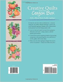 We recently experimented with crayon techniques in the Popular Patchwork forum and I do wish we'd had the benefit of this great book to aid us. Terrie's techniques uses nothing more than ordinary Crayola wax crayons (not fabric crayons), fusible web and paper napkins to create gorgeous fruit, flowers, birds and butterflies with delightful jewel-like colours and a hand-painted look. She uses ordinary white fabric or pale batiks as a base and then builds up the wax coloured layer with an easy melt and blend method. Terrie gives excellent instructions on how to achieve this effect and claims to have taught everyone from children to grandparents to create this type of appliqué motif successfully. She has no problems with washing the resulting items either! This is a very interesting and well thought out, and well presented, process; this would be a great book for those who feel that their artistic skills may be limited. --Popular Patchwork magazine