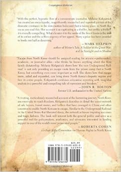 Escape from North Korea should be assigned reading for anyonepolicymaker, academic, or journalist alikewho think they know anything about the Kim family dictatorship. Melanie Kirkpatrick shows how the new Underground Railroad” is not only providing an escape route from the prison camp that is North Korea, but something even more important as well. She shows how that escape route, aided and expanded, can bring down North Korea’s despotic regime and free its entire people. Kirkpatrick combines exhaustive reporting with insightful analysis in a powerful and compelling tale of repression and freedom.” John R. Bolton, Former U.S. ambassador to the United Nations