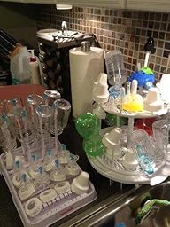 So we decided to keep looking. My husband picked up some of the evenflo glass bottles at Target. Because they are so cheap, we thought we'd give them a try. We were both pleasantly surprised. We purchased the 4 ounce ones to start, which are light and perfect for when your baby is a newborn. The first thing i noticed was that the glass was thick, so i have no worries about breaking the bottle. No silicone sleeves needed! That eliminates that problem. Then i tried to wash the bottle. The first bottle brush i used Munchkin Deluxe Bottle Brush, Colors May Vary did not fit into the narrow neck of the bottle. But then the second brush we tried fit! It's the best brush ever!! OXO Tot Bottle Brush with Nipple Cleaner and Stand, Orange.