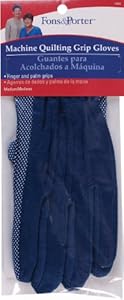 Fons and Porter Machine Quilting Grip Gloves, Blue-size Medium, help you to quilt and sew with ease. Cool, comfortable cotton with finger and palm grips allow you to hold fabric securely and guide it where you want it to go. Reduce tension in neck and hands. Gloves are machine washable, 100-Percent cotton yarn.