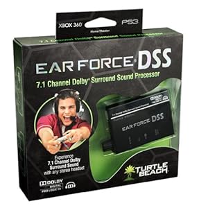 The Ear Force DSS 7.1 channel Dolby surround sound processor transforms any stereo headset into full, immersive surround sound for playing Xbox 360, PlayStation 3 or PC games and watching movies with Blu-ray or DVD players. It works with any set of stereo headphones and is the perfect complement to the Turtle Beach Ear Force series of stereo gaming headsets (X31, X11, XLC, Z1, Z2 and PX21). The optical digital input easily connects to a game console or media player for Dolby 7.1 channel surround sound and the analog input can also be used to upgrade analog stereo audio sources to Dolby Pro Logic IIx for virtual surround sound. A bass boost control adds sub-woofer effects for enhanced realism to any audio source.With the Ear Force DSS, video game and movie fans will be able to hear distinct audio events happening all around them, greatly enhancing the overall experience and rewarding gamers with a newfound competitive edge. DSS users playing games and watching movies on their game consoles will actually hear the 7.1 surround sound from certain 5.1 channel audio tracks via additional “hidden” channels called Dolby EX.