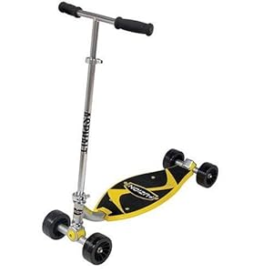 The Fuzion Asphalt Ultimate Carving Machine has independent control of the front and rear wheel steering. The front wheels steer the front of the Asphalt when the handle bars are turned, just like a car or bicycle. The back wheels turn the back of the Asphalt when the deck and the handlebars are leaned (banked) from side to side, like a skateboard. By using different combinations of leaning and steering you will quickly be carving and sliding all kinds of turns.