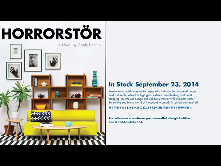 Beneath the quirky trappings of Grady Hendrix's new novel lies a conventional but well-told horror/suspense story. Protagonist Amy works at the recently-opened local branch of Orsk, a trendy furniture store whose similarities to Ikea are entirely parodic. Despite Orsk's upbeat "happy employee, happy customer" rhetoric, something is seriously wrong: mysterious vandalism is occurring every night while the store is empty, and the higher-ups aren't happy. Amy's supervisor asks her to join a small group staying overnight to investigate the problem, and she agrees, little realizing what a nightmare she's set herself up for.