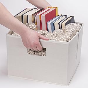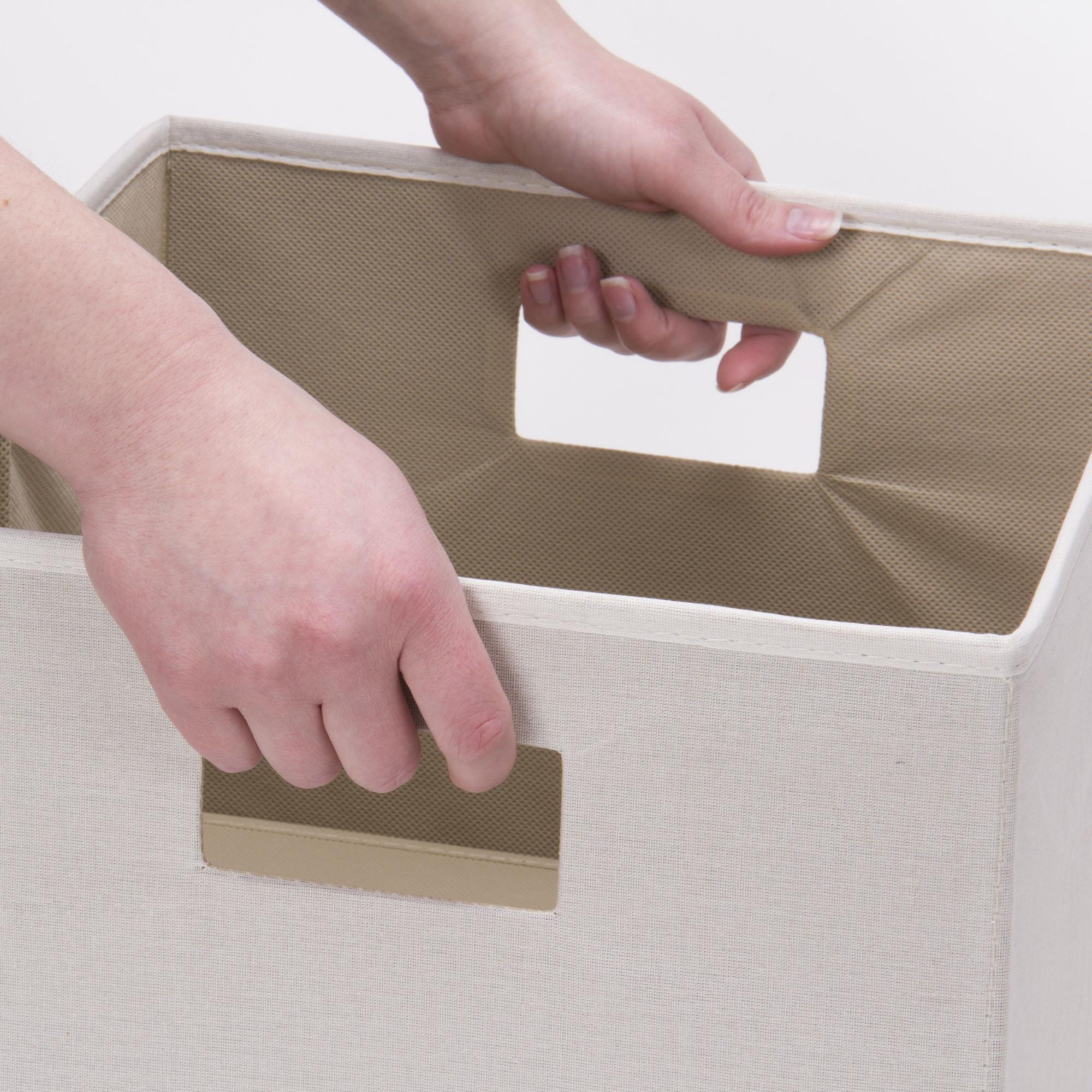 Household Essentials Square Canvas Storage Bin is a classic storage bin. It's square shape fits into corners, on shelves, and in closets for a perfect fit that uses your space better. This sturdy bin has two cut out handles for easy maneuvering It's open top makes it easier to access and pile high. It's quick and easy to set up: simply unfold and put the stability insert in place. Best of all, this handy storage bin is collapsible--so you can fold it back down and tuck it away when you don't need it. It's a versatile storage option that allows you to decorate with the seasons, without sacrificing your space or your budget. So set up your home, apartment, or dorm room with this classic, natural canvas storage bin and tidy well. This bin measures 10 inches high, 12 inches wide, and 13 inches deep.