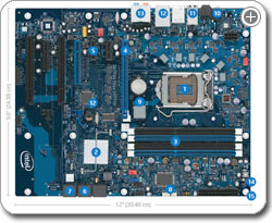 | Desktop Board DP55WG Form Factor: ATX Compatible Processors: Core i7-870, Core i7-860, Core i5-750 Memory: Four 240-pin DDR3 SDRAM DIMM sockets (support for DDR3 1600/1333/1066 MHz DIMMs) | |  | |