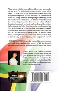 "Ilana Mercer calls her book `a labor of love to my homelands, old and new.' The old is South Africa, which the author left in 1995. The new is the U.S.A. In both nations the founding European stock yielded up their dominance in the interests of justice and liberty. Instead of moving to equal citizenship under fair laws, however, both nations - in different style and measure but with similarly dire results - have embraced official tribalism (`multiculturalism') and state-enforced racial favoritism (`affirmative action'). For South Africa the transformation has been fatal - brutally so for victims of the nation's swelling social disorder, as Ms. Mercer documents in heartbreaking detail. For the U.S.A. it is not too late to change course. The lesson of South Africa, if widely known, will help to open American eyes. Here is the lesson, in a compelling and important book." --