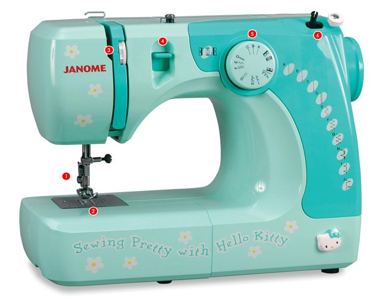 The Hello Kitty is a fully function 3/4 model that is perfect for the beginning sewist! It offers a free arm and a carry handle for easy portability. This 12-lb. machine offers 11 stitches, including 2 stretch stitches and a built-in buttonhole. Standard Janome quality and durability make this the perfect machine for a first-time sewist as a quilting machine to take to classes.