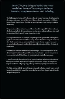 ....it is also rather disturbing,and not just because so many mayors council-persons,political fixers and clergy were involved,but the detestable reaction amongst the syrian Orthodox jewish community to revealations that many of its revered religious leaders were in fact little more than hypocrite rogues hiding behind thier holy books...The book makes it quite clear that the sort of million dollar money laundering described was a well known and well kept secret among the community,and that far from being pleased that the bad apples among them were exposed the community instead vented its rage against the"rat" whose undercover work made the whole sting possible..Solomon Dwek,the ponzi scheme artist whom the feds used to get both the crooked pols and the crooked rabbis has been vilified by his own orthodox religious community,apparently on the absurd and dangerous notion that being a crook,being a religios leader who is a crook is somehow better than being the one who exposes this sort of activity ...Loyalty to the tribe is,in thier absurd way of thinking more important that following the laws of the land,or exposing the rogues to justice.
