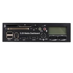 Description: 5.25 inch design, large 1.7'' LCD screen 2 groups of computer case temperature real-time detection of output, and it can detect the CPU,SYS temperature 2 groups of fan speed real-time detection of output, can adjust manually fan speed according to the temperature when the case temperature over 60 degree celsius or the fan gets stuck, it will give an alarm Fronting power port which could give power supply to hard disk via using the standard power cable Card slot:1*SD MS MMC 、1*CF、1*XD、1*TF、1*M2、2*USB2.0、1*IEEE1394、1*SATA、1*ESATA、1*5V-12V power supply、1*MIC、1*Earphone the fan speed control and display are suitable for 3 pins fan only   Package included: 1* media dashboard (in box)