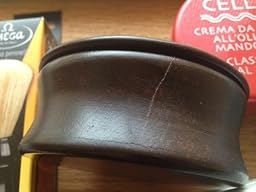 I bought this so I didn't have to keep my soap in the plastic container it came in. I lather on my face, so the fairly shallow depth described by the other reviewer didn't bother me. Overall, it looks good - solid, outside well-varnished, and not reeking of varnish like the other reviewer's one. However, there were a couple of negative things that stood out for me.