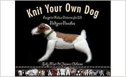 Dog lovers may want to knit these 25 charming "pedigree pooches" as a display set, although it will be a lot of work! Each little dog--they range from 6.75" high x 8" long (Afghan) to 3.5" x 6.25" (Corgi)--has a lot of parts, which need to be joined or sewn together, stuffed, and embroidered with noses and eyes. For example, the cover dog (Wire-haired Fox Terrier) requires knitting two back legs, two front legs, a right side and tail, a left side and tail, a body, a neck and head, a tummy, two ears, and a collar.