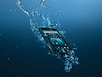 | Disclaimers | *Second only to diamonds in mineral hardness, sapphire is virtually scratchproof and provides outstanding protection against impact damage. It also delivers exceptional protection from damaging "real world" scenarios, ranging from keys in a pocket to a face–first drop onto rocks, where independent lab tests show it to be far less likely to break than leading strengthened touch–panel glass. | † Phone will not operate under water and should be dried as quickly as possible when wet. To ensure that the phone is waterproof, make sure the charger/port, audio jack and card slot covers are always properly sealed. | ‡Recognizes touch input while wearing gloves up to 3 mm thick. The material, texture and thickness of the glove as well as how it fits the hand will impact performance. Individual results may vary. |