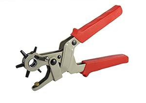 This is a good leather hole punch. It is made sturdy so you do not have to worry about the handles or head of the punch bending like some of the cheaper models. This works great on belts but if you have some horse tackle, saddel or the like you would like to use it on it may not be the best choice since they have thicker leather than a belt usually. The only down side to this leather punch is that there is a small black bracket that holds the punch wheel in place while you punch a hole in your leather. Well, this is a soft metal so it bends if you punch into heavy leather. If this was a solid latch instead of sheet metal it would be an awesome leather punch. Good news is the latch has a screw that lets you remove it and bend it back into shape but my guess is this will break eventually if you use it a lot. If this bracket is bent they you do not get a clean hole cut into your leather. The thicker your leather the greather chance this will happen.