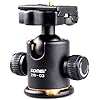 For almost three times as much money, this Manfrotto 494 unit clearly is made to perform. It has a lever that locks the ball easily; a "drag" adjustment to allow fine-tuning of the friction of the ball when the ball is not locked; and the lock lever may be positioned to personal taste. Overall, this is a superior solution that is worth the extra money if you have a larger DSLR.