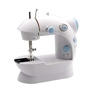 The LSS-202 from Michley is a mini sewing machine that features double thread, double speed and automatic thread rewind. You can use hand switch or foot pedal to start. Foot pedal, adaptor, and thread bag included. Uses DC 6V power.