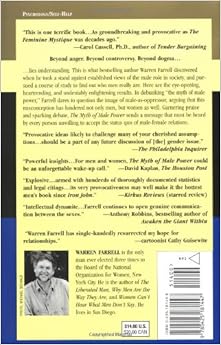 This seminal work challenges, debunks, and redirects many of the paradigms held about men and their relationships with women. Farrell ( The Liberated Man , LJ 2/1/75; Why Men Are The Way They Are , LJ 9/1/86) calls for a gender transition movement not specifically limited to men or feminists. He shows how men's workshops and feminist organizations promulgate sexism and support limited goals while not fully addressing the issues and responsibilities involved in fully empowering both sexes. Farrell's endnotes are more diversified and complete than many dissertations. This title is more important to the male/female relationship discussion than Robert Bly's Iron John ( LJ 11/15/90), Michael Gurian's The Prince and the King ( LJ 7/92), Sam Keen's Fire in the Belly ( LJ 2/15/91), or any of Betty Friedan's works (e.g., The Feminine Mystique , LJ 1/1/63). Recommended for all public and academic libraries.