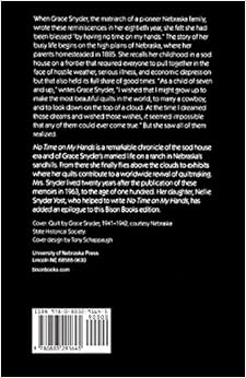 This book is an excellent history of how the midwest was settled - a little like House on the Prairie, but for grownups. From her childhood in a sod house to the Nebraska Sandhills as an adult, she accurately tells the story of what it was like to live in a rapidly changing world. It is amazing to think of how hard life was on the prairie, and yet she found time to make the most exquisite quilts. I read this book because I know of Grace Snyder as a master quilter, and enjoyed this book because of all I learned about the settling of my state, particularly the Sandhill region, of which I knew very little. She brings you into her family, and you rejoice in their accomplishments, and share in their sorrows. This book is a gem.