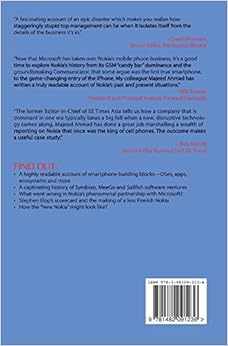 This book at times was sloppily written and poorly organized, but offered some interesting insights on where Nokia went wrong in the smartphone race. Like BlackBerry and Microsoft, Nokia was a victim of its own success and stuck with its playbook for too long, Ahmad writes. With its telecom background Nokia was more focused on hardware and specs, rather than software and interface, two of the great strengths of Apple and Android. Despite these strengths, the poor quality of the writing makes this book best suited for industry insiders rather than the general reader.