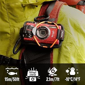 Tough TG-4 takes all you can dish out and keeps shooting! Waterproof to depths of 50ft/15m, it’s perfect for snorkeling or battling the waves. TG-4’s robust construction is crushproof to 220lbf/100kgf, shockproof to 7ft/2.1m, and dustproof. And because TG-4 is freezeproof to 14°F/-10°C, even frigid conditions don’t faze it. From snowy slopes to coral reefs, this is the camera you can always keep with you.