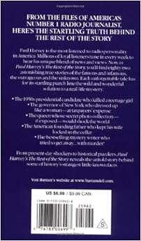 Paul Harvey's The Rest Of The Story you'll find eighty-two astonishing true stories of the famous and infamous, the outrageous and the unknown. Each unforgettable tale has for its startling punch line the wild and wonderful solution to a real-life mystery. The 1950's presidential candidate who killed a teenage girl. The governor of New York who dressed up like a woman--at taxpayer's expense. The queen whose secret photo collection--if exposed--would shock the world. The American founding father who kept his wife locked in the cellar. The best-selling mystery writer who tried to get away . . . with murder! From present-day shockers to historical puzzlers,
