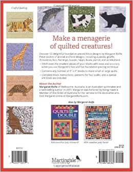 Create a menagerie of quilted creatures with exciting foundation-pieced block designs by Margaret Rolfe! Stitch even the smallest pieces of your blocks with ease and accuracy.