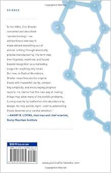 I don't like criticizing Drexler's Radical Abundance, but I am anyway, in the hopes that he will elect to write a sequel to Engine's of Creation, or maybe radically, update, Engine's with new material and speculations. Drexler did speak to 3D printing which is great, but I believe Drexler is under-rating 3D printing tech, and over-estimating Nanotech. But that's just a guess on my part, and I could be way, wrong. The earlier work Engine's was better in describing scenarios, on how life would change once we attained nano. This is what Abundance is sorely, missing. Please write a new work, describing how nanotech would effect manufacturing, economics, space travel, and especially politics. Now, that would be interesting to me.