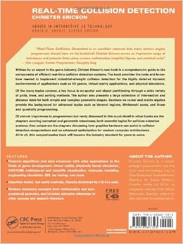 Real-Time Collision Detection is an excellent resource that every serious engine programmer should have on his bookshelf. Christer Ericson covers an impressive range of techniques and presents them using concise mathematics, insightful figures, and practical code." -Eric Lengyel, Senior Programmer, Naughty Dog