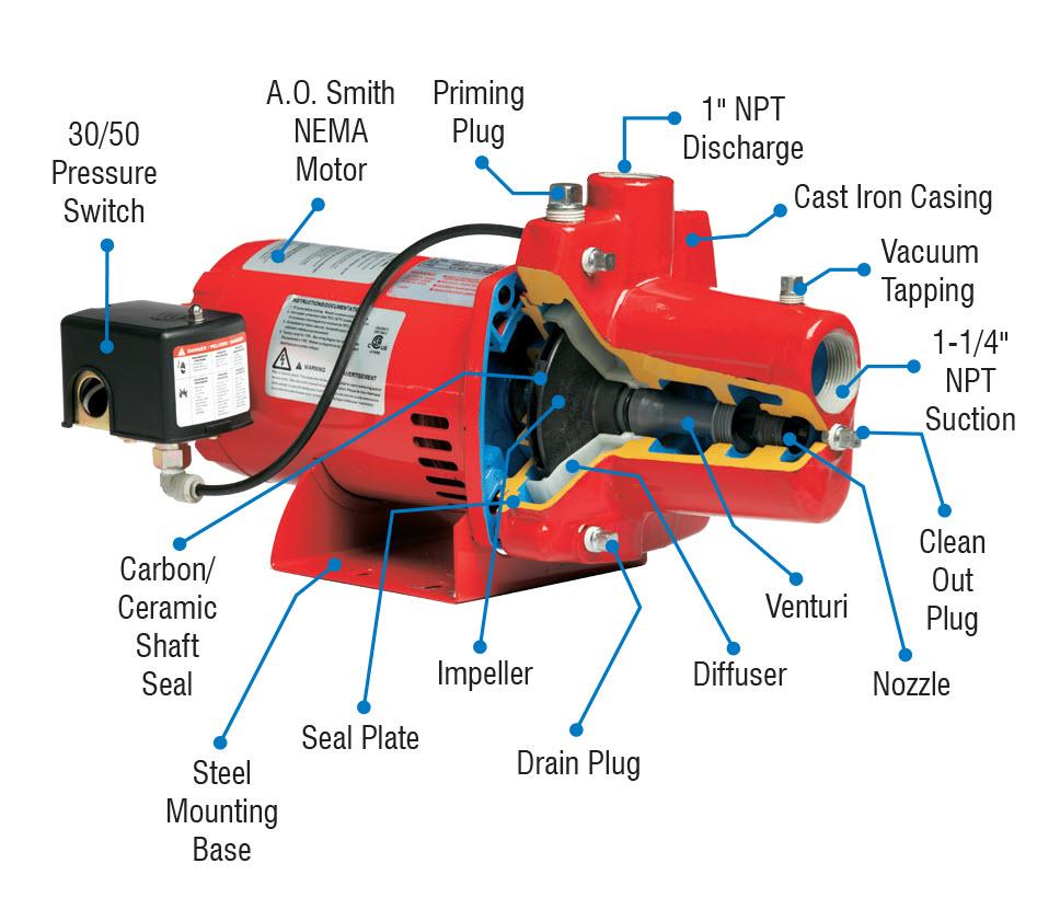 • Rugged cast iron casing - Ideal for supplying fresh water to rural homes, farms, and cabins.