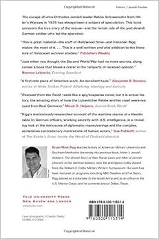 Dr. Rigg's first book, Hitler's Jewish Soldiers, gave a careful and balanced scholarly account of those 150,000 part-Jewish soliders in the Germany military of WWII. ONe of the most amazing things I have ever encountered. He outdid himself with this follow up. Who could believe that in 1939 the U.S. State Dept. could partner with a Nazi intellignece agency to secretly rescue the rebbe from occupied, war torn Poland? The complications were staggering -- if the Nazi intelligence agents were discovered by the other Nazi agencies they would have been executed. The rebbe was mystical and eccentric and was a VERY difficult man to hide and smuggle.