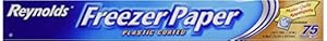 Reynolds freezer paper is the ideal tool for wrapping foods for freezing and for general household purposes. The thick paper gives the product strength and durability as well as an easy-to-write-on surface. The plastic coating provides a barrier to air and moisture to protect the quality, flavor and nutrition of foods during freezing. It is great in the kitchen for protecting counters or lining shelves and drawers. For crafting and quilting, use it as templates for appliques or kids painting, school banners and projects. The usages are endless.