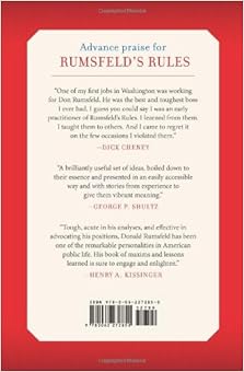 First gathered as three-by-five cards in a shoebox and then typed up and circulated informally over the years, these eminently nonpartisan rules have amused and enlightened presidents, business executives, chiefs of staff, foreign officials, diplomats, and members of Congress. They earned praise from the Wall Street Journal as "Required reading," and from the New York Times which said: "Rumsfeld's Rules can be profitably read in any organization…The best reading, though, are his sprightly tips on inoculating oneself against that dread White House disease, the inflated ego."
