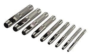 This set of 9 comes in some very useful sizes. I used the smallest punch to create a new hole in the straps of an old pair of sandals where the leather had stretched out. Just the right size for this purpose. Then the next larger size was exactly the right size for belts. I used it on two belts, one of regular weight leather and the other very heavy weight leather. It worked easily both times. Darned useful for those embarrassing moments when you've lost 16 lbs, don't feel like buy new cloths but still have more lbs to go before your old/cute wardrobe works again.