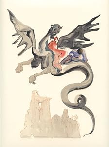 Salvador Dali Divine Comedy woodblock engraving "On Geryon's Back"
