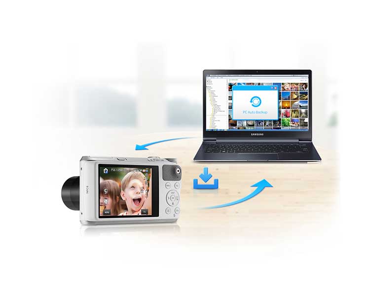 Saving photos, video clips, and more to your computer is easy with the WB350. Just select the PC Auto Backup function, and the camera will wirelessly transfer all of the files on the camera to your PC or Mac.