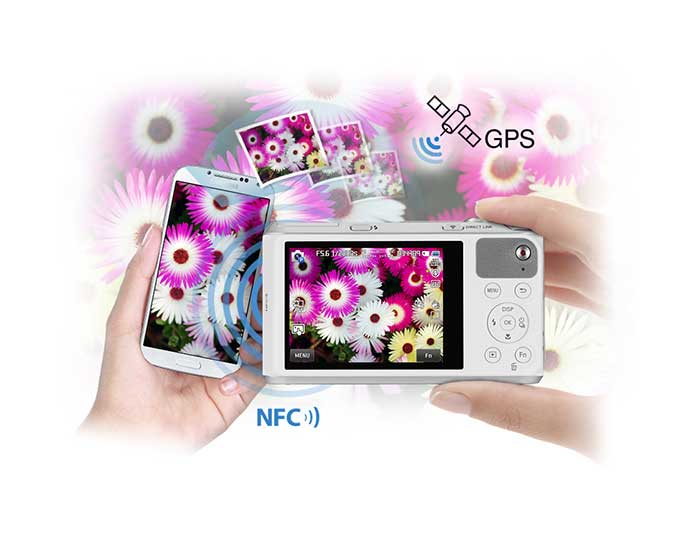 Like other Samsung devices, the WB350 features Photo Beam technology, which makes it a snap to share photos. Simply tap the camera on any NFC-compatible smartphone to automatically share whichever image you're currently viewing.